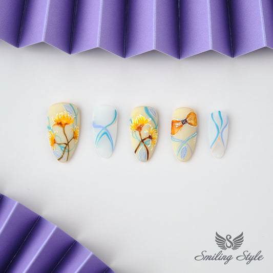 Autumn Sun Fairy Tale Press On Nails by SMILINGSTYLE | Luxury Fake Nails | Reusable Nails | Handmade Nails