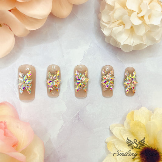 A Snowy Dream Press On Nails by SMILINGSTYLE | Luxury Fake Nails | Reusable Nails | Handmade Nails