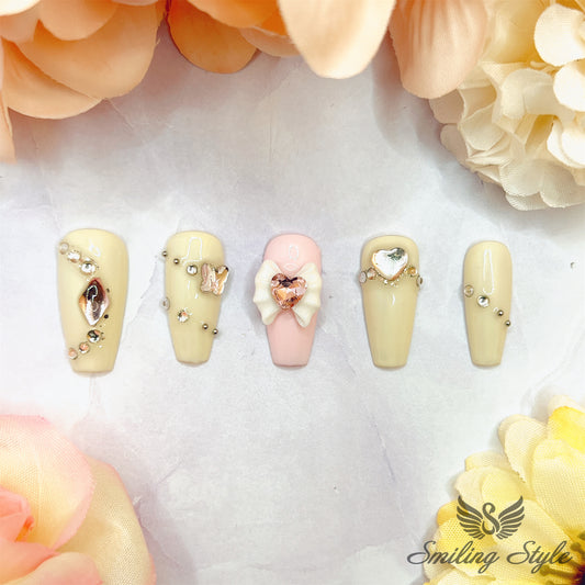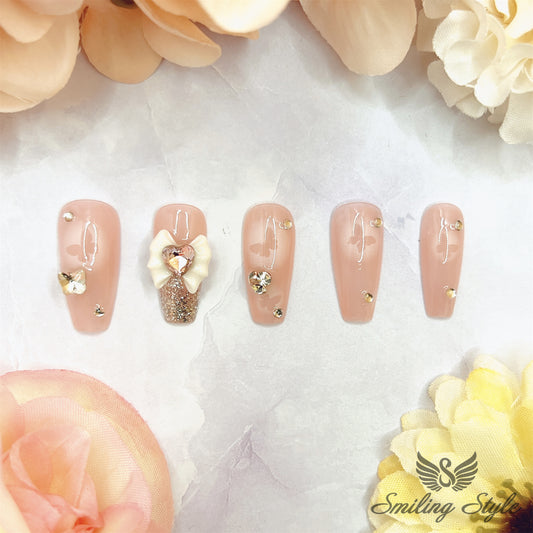 Big Pink Bow Butterflies Press On Nails by SMILINGSTYLE | Luxury Fake Nails | Reusable Nails | Handmade Nails