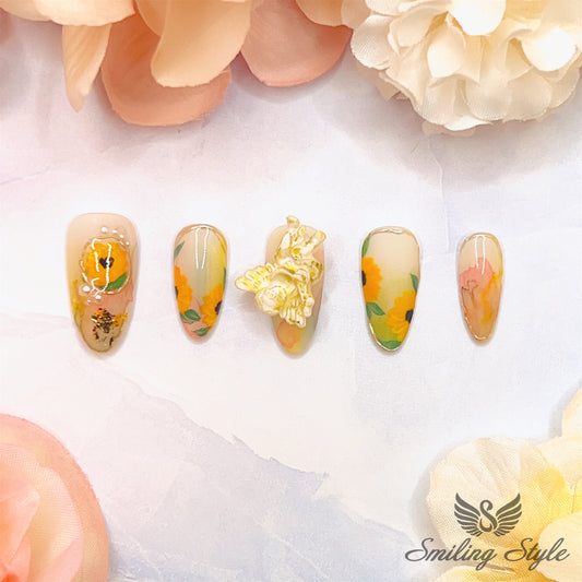 Angle under The Sunflower Press On Nails by SMILINGSTYLE | Luxury Fake Nails | Reusable Nails | Handmade Nails