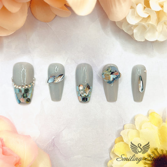 Silver Foggy Night Press On Nails by SMILINGSTYLE | Luxury Fake Nails | Reusable Nails | Handmade Nails