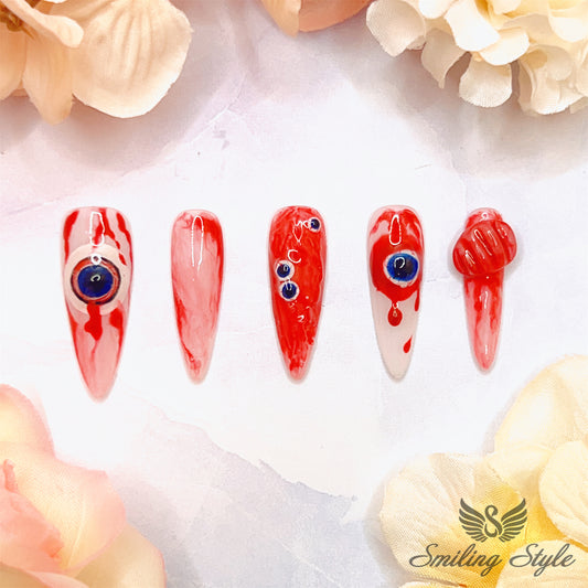 Scary Bloody Eyes Press On Nails by SMILINGSTYLE | Luxury Fake Nails | Reusable Nails | Handmade Nails