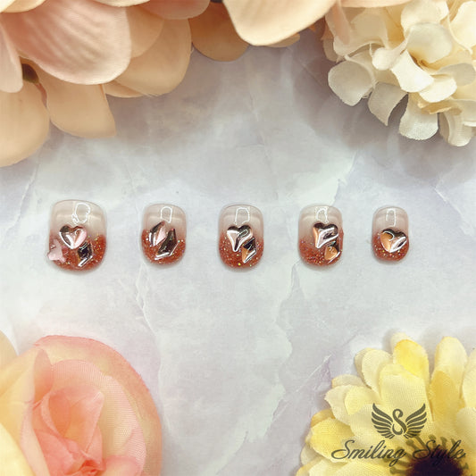 Tan Elegant Rose Press On Nails by SMILINGSTYLE | Luxury Fake Nails | Reusable Nails | Handmade Nails