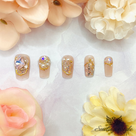 Nude Pearl Love Press On Nails by SMILINGSTYLE | Luxury Fake Nails | Reusable Nails | Handmade Nails