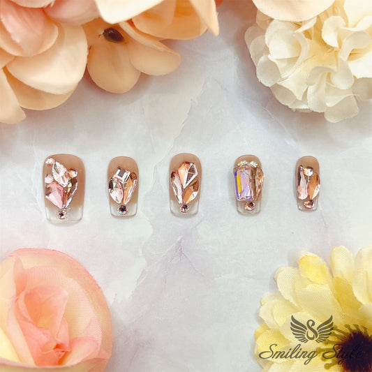 Pink Elizabeth Press On Nails by SMILINGSTYLE | Luxury Fake Nails | Reusable Nails | Handmade Nails