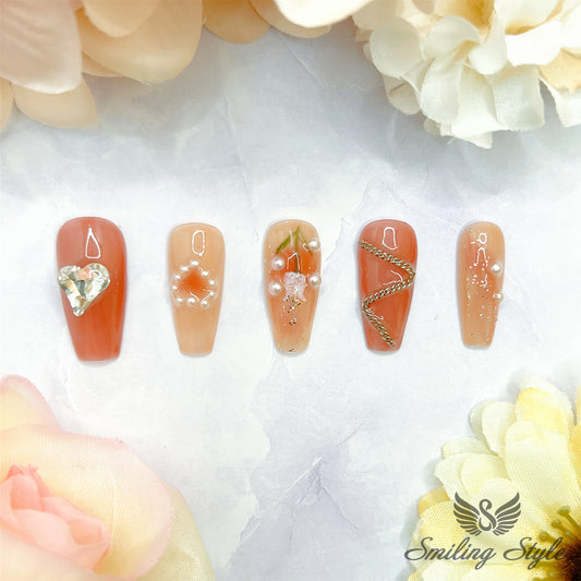 Heart Chain Tulips Press On Nails by SMILINGSTYLE | Luxury Fake Nails | Reusable Nails | Handmade Nails