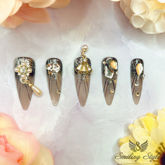 Black Knight Gradient Press On Nails by SMILINGSTYLE | Luxury Fake Nails | Reusable Nails | Handmade Nails