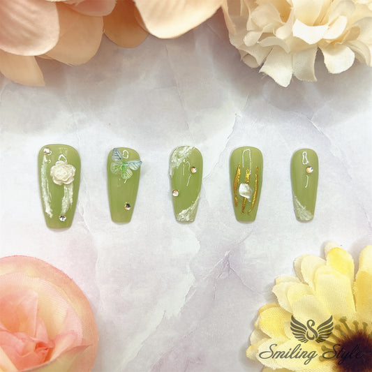 Green Land's Local Gold Press On Nails by SMILINGSTYLE | Luxury Fake Nails | Reusable Nails | Handmade Nails