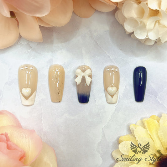 White French Ballerina Slippers Press On Nails by SMILINGSTYLE | Luxury Fake Nails | Reusable Nails | Handmade Nails