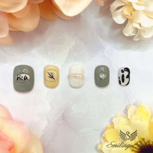 Sea Shell River of Camellia Press On Nails by SMILINGSTYLE | Luxury Fake Nails | Reusable Nails | Handmade Nails