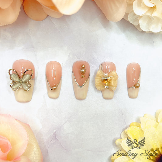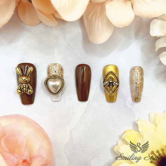 Golden Bunny Boo Press On Nails by SMILINGSTYLE | Luxury Fake Nails | Reusable Nails | Handmade Nails