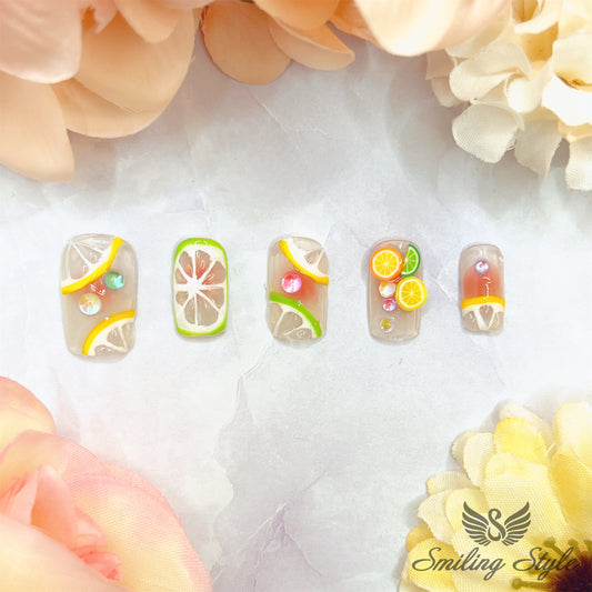 Summer Lemon Party Press On Nails by SMILINGSTYLE | Luxury Fake Nails | Reusable Nails | Handmade Nails