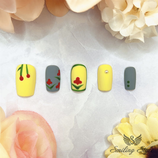 Little Pigment Flowers Press On Nails by SMILINGSTYLE | Luxury Fake Nails | Reusable Nails | Handmade Nails