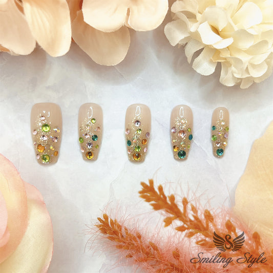 Flashy Rainbow Blings Press On Nails by SMILINGSTYLE | Luxury Fake Nails | Reusable Nails | Handmade Nails