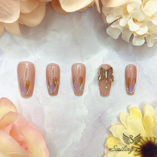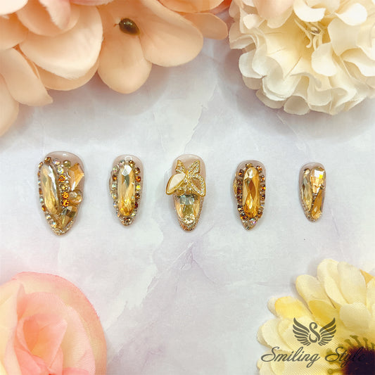 Golden Butterflys Touch Press On Nails by SMILINGSTYLE | Luxury Fake Nails | Reusable Nails | Handmade Nails