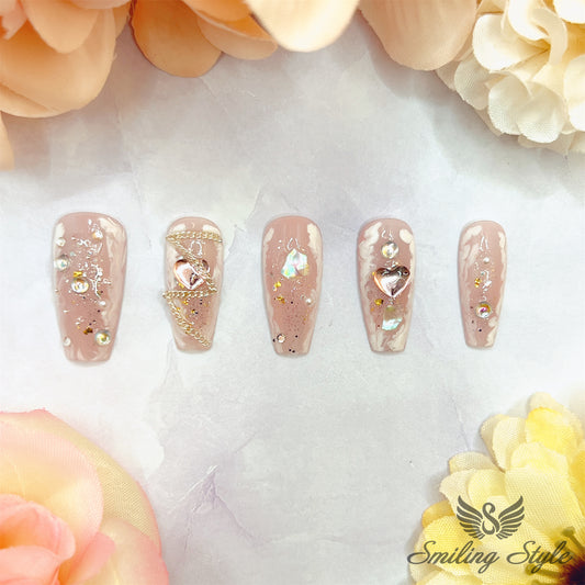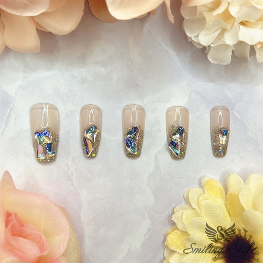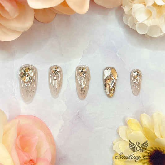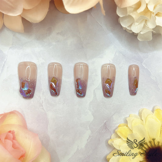 Sea Shell River of Camellia Press On Nails by SMILINGSTYLE | Luxury Fake Nails | Reusable Nails | Handmade Nails