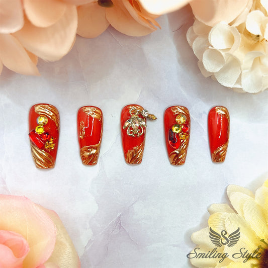 Red Hot Ruby Party Press On Nails by SMILINGSTYLE | Luxury Fake Nails | Reusable Nails | Handmade Nails