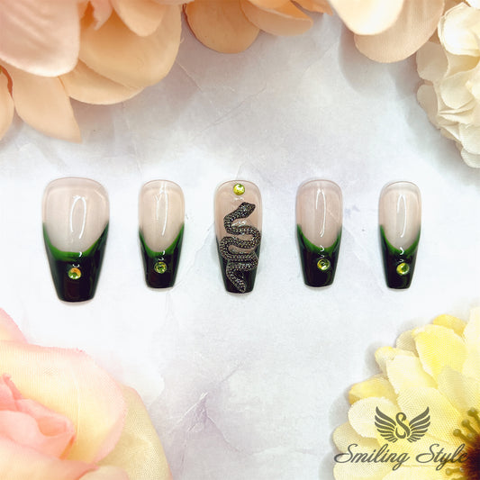 French Black Snake Press On Nails by SMILINGSTYLE | Luxury Fake Nails | Reusable Nails | Handmade Nails