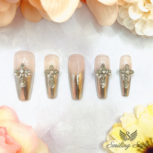 Cross Knight Heart Press On Nails by SMILINGSTYLE | Luxury Fake Nails | Reusable Nails | Handmade Nails