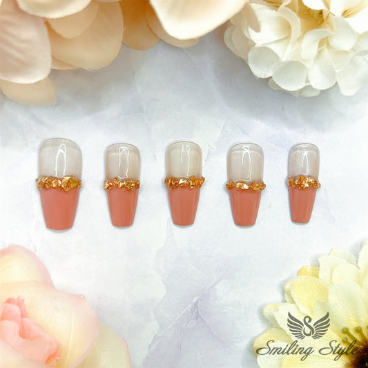 Early Autumn Coffee Brew Press On Nails by SMILINGSTYLE | Luxury Fake Nails | Reusable Nails | Handmade Nails