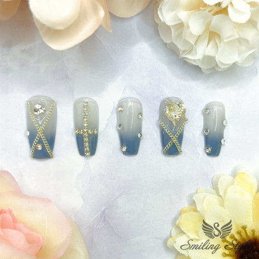 Cross Knight Heart Press On Nails by SMILINGSTYLE | Luxury Fake Nails | Reusable Nails | Handmade Nails