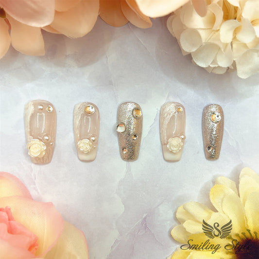 Snowing White Camellias Press On Nails by SMILINGSTYLE | Luxury Fake Nails | Reusable Nails | Handmade Nails