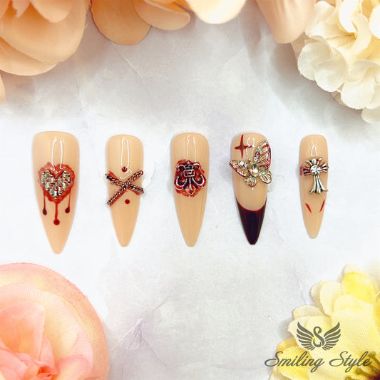 Drop of Love Blood Press On Nails by SMILINGSTYLE | Luxury Fake Nails | Reusable Nails | Handmade Nails