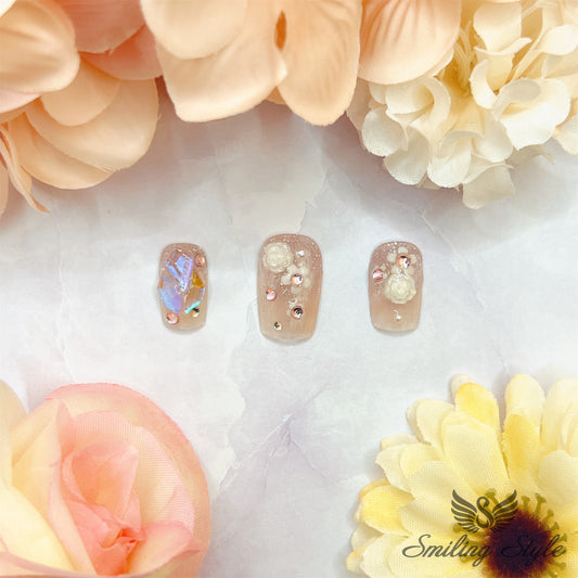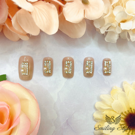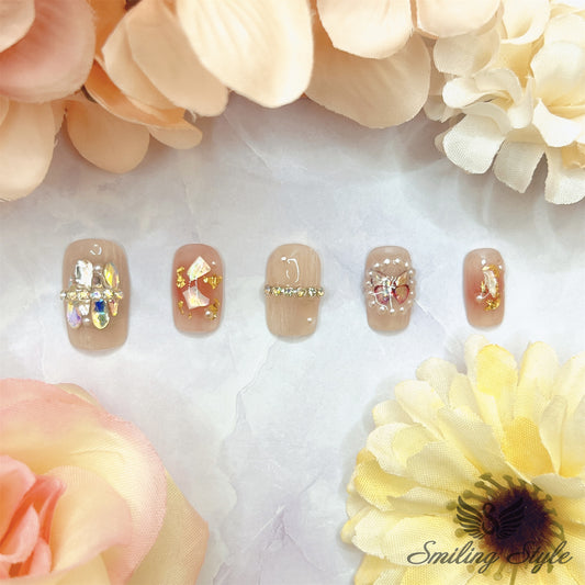 Champagne Pink Crystal Diamond Tears Press On Nails by SMILINGSTYLE | Luxury Fake Nails | Reusable Nails | Handmade Nails