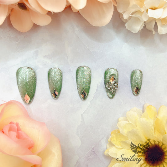 Emerald's Cat Eyes Press On Nails by SMILINGSTYLE | Luxury Fake Nails | Reusable Nails | Handmade Nails