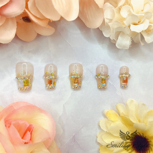 Honey Pot Rose Quartz Press On Nails by SMILINGSTYLE | Luxury Fake Nails | Reusable Nails | Handmade Nails