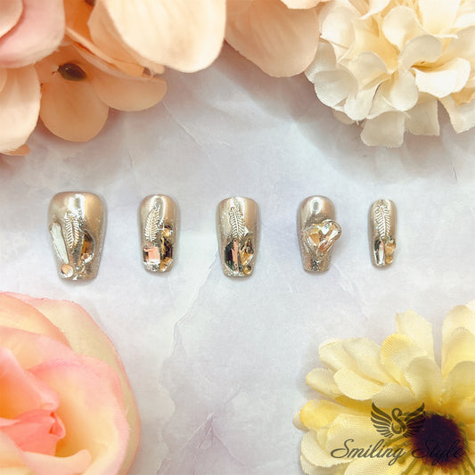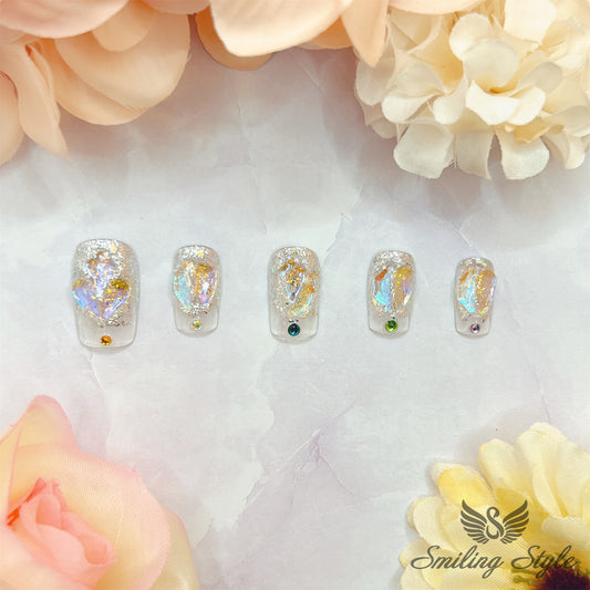 Magic Mirror Glass Press On Nails by SMILINGSTYLE | Luxury Fake Nails | Reusable Nails | Handmade Nails