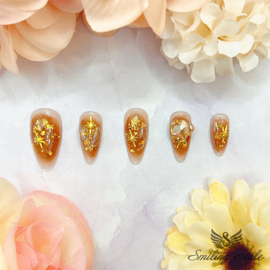 Early Autumn Coffee Brew Press On Nails by SMILINGSTYLE | Luxury Fake Nails | Reusable Nails | Handmade Nails