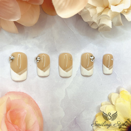 French White Lady with Little Diamond Press On Nails by SMILINGSTYLE | Luxury Fake Nails | Reusable Nails | Handmade Nails