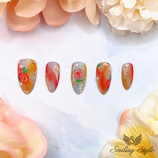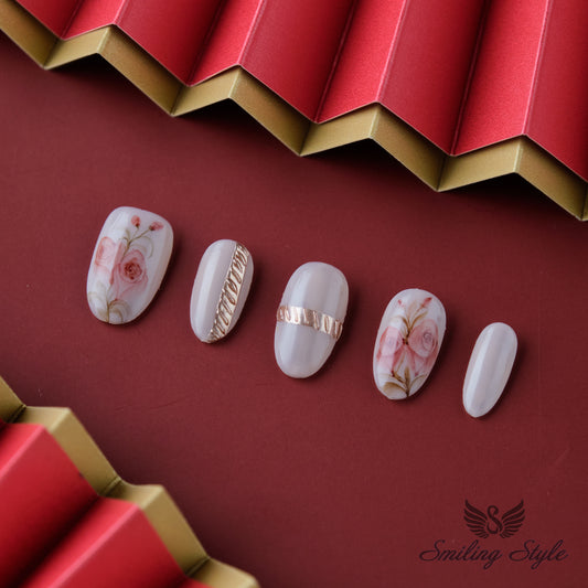 Elegant Rose Press On Nails by SMILINGSTYLE | Luxury Fake Nails | Reusable Nails | Handmade Nails