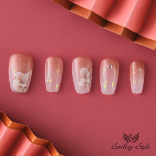 Rose Light Press On Nails by SMILINGSTYLE | Luxury Fake Nails | Reusable Nails | Handmade Nails