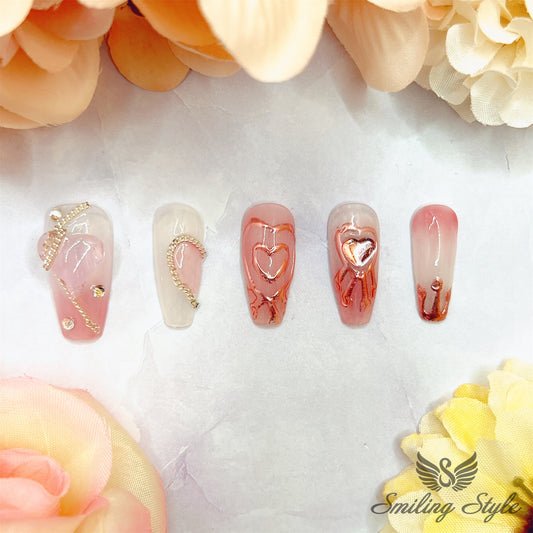 Pink Peachy Peach Girl Press On Nails by SMILINGSTYLE | Luxury Fake Nails | Reusable Nails | Handmade Nails